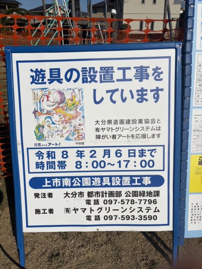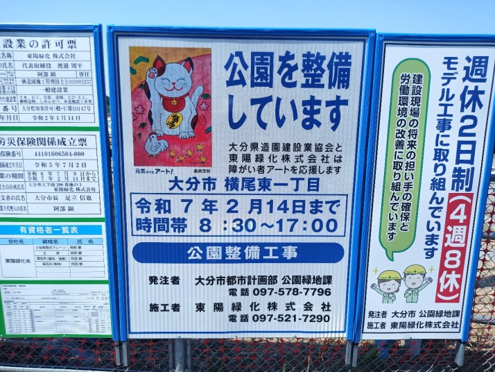 受注した工事現場の看板等に障がい者アートを掲示することで、無機質になりがちな工事現場に彩と優しさを添えるとともに、地域の皆さまにも親しみを感じていただける環境づくりを目指しています。